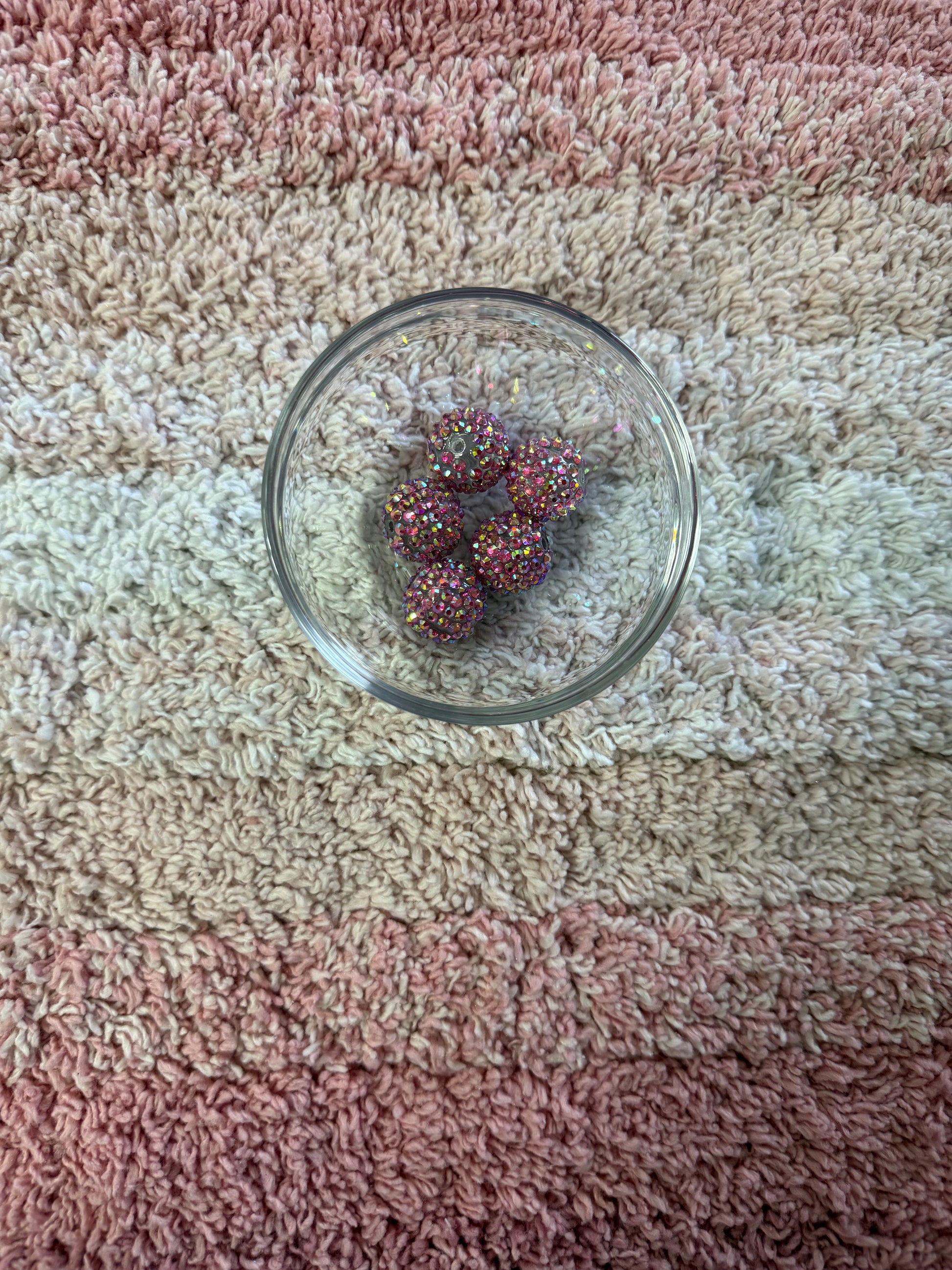 20mm Pink Shimmer Rhinestone Bubblegum Beads (5 Beads In A Pack)