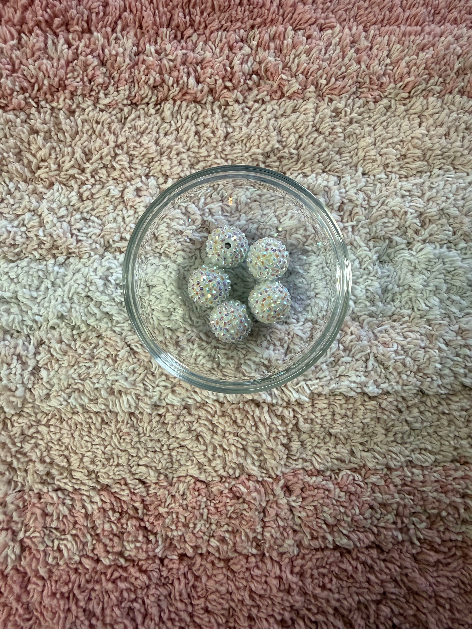 20mm White Rhinestone Bubblegum Beads (5 Beads In A Pack)